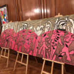 Totoy Zamudio en su exhibición de la muestra de artes visuales titulada “Praga la bella y el pintor enamorado”