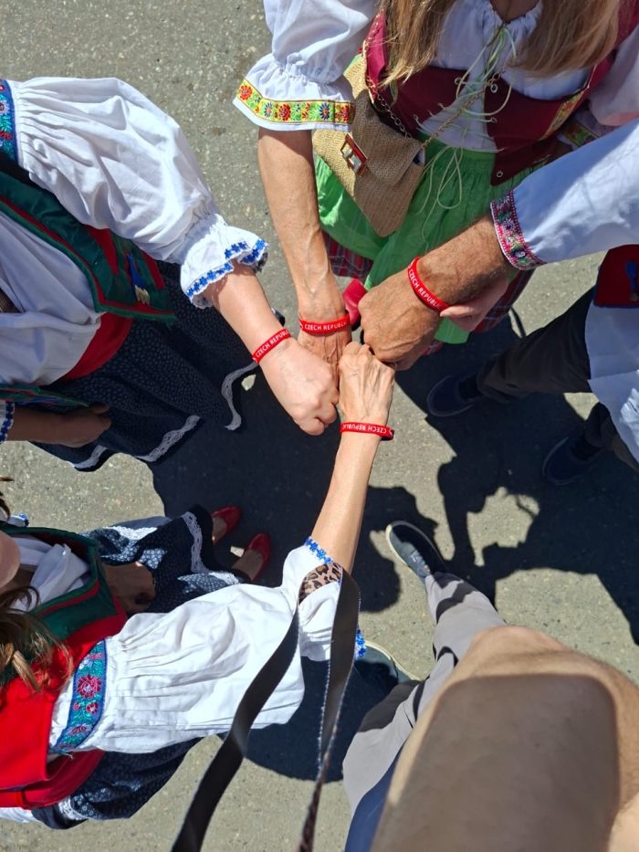 Miembros de la Directiva del Círculo Chileno Checo: Lenka Sopik, Mauricio Krippel, Patricia Herrera, Luis Velozo y Ana Zeman participaron con trajes típicos (kroj), representando a la República Checa y presentándose ante todos los visitantes y con pequeños pasos de polka.