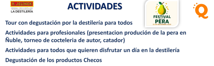 El programa estuvo muy bien organizado con espectáculos de bailes y música. También se hizo un recorrido por las instalaciones de la planta y presentaron un video, además de degustaciones de los diferentes destilados. Hubo una competencia de coctelería. En los stands de comida estuvo presente Francisco Klimscha con gulaš y pan negro, especialidad checa y cerveza checa fabricada por Pavla Soupalova.